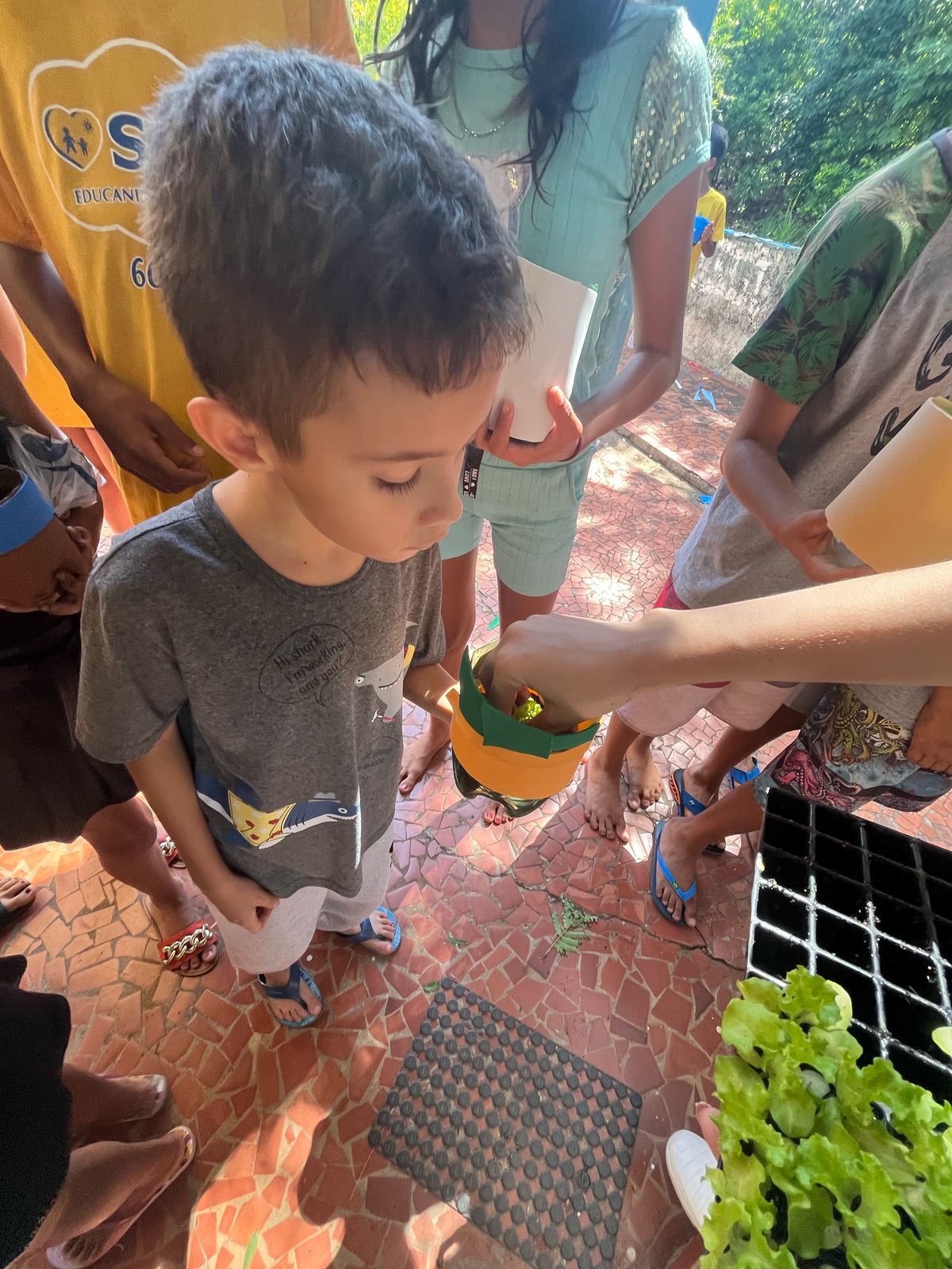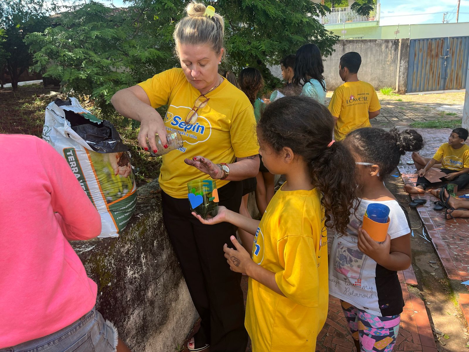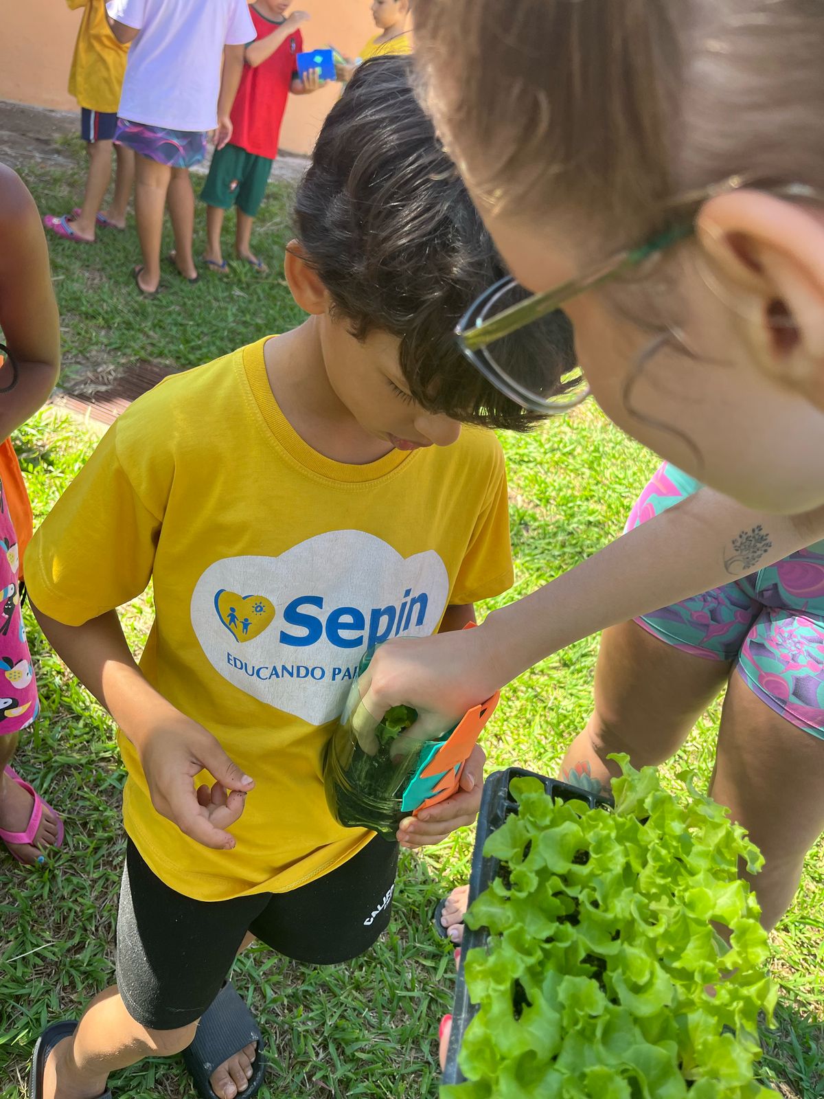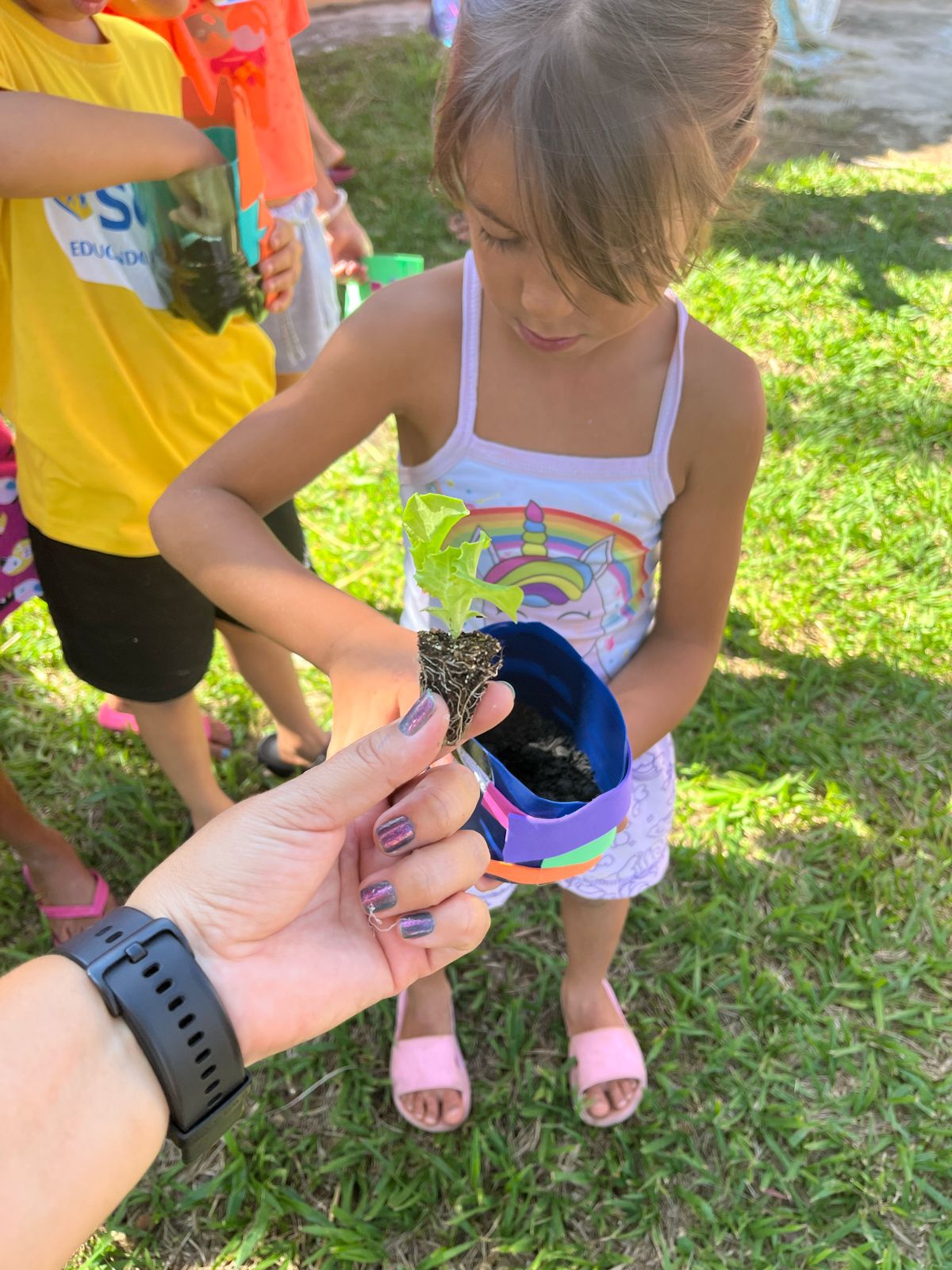 As crianças participaram de uma atividade especial de arte e cuidado com a natureza. Cada uma decorou seu vasinho feito com garrafa pet reciclada e plantou mudas de alface, unindo criatividade, sustentabilidade e bem-estar.