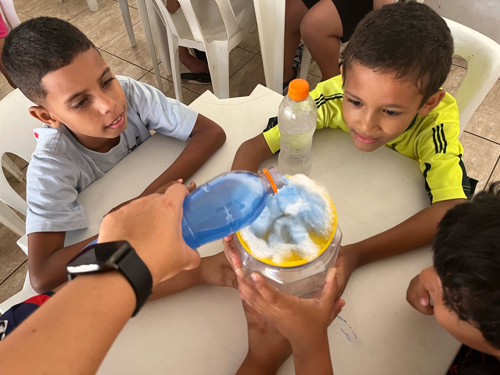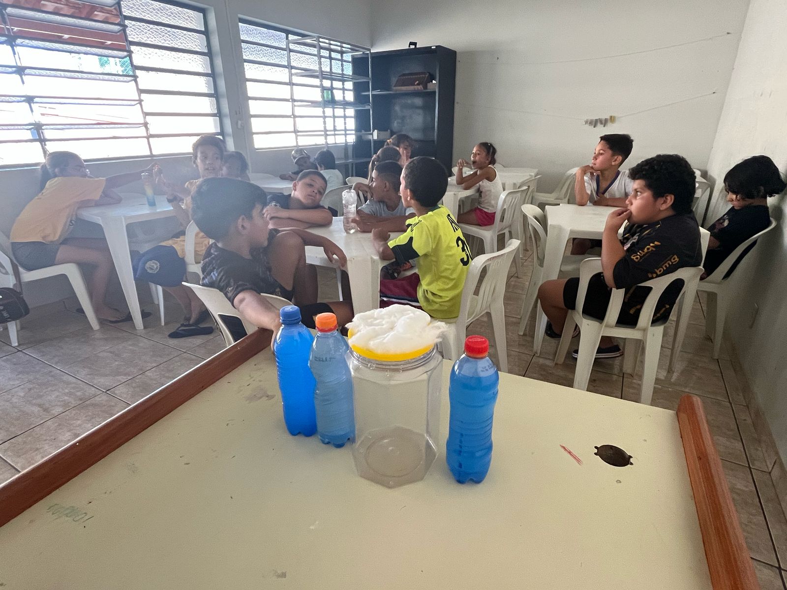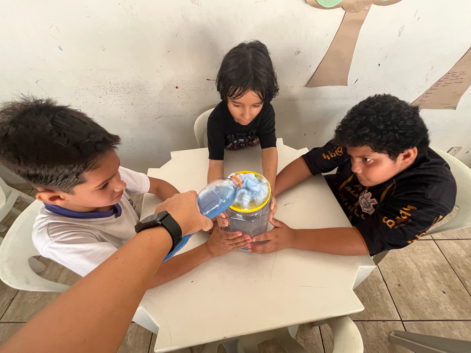As crianças aprenderam sobre a importância da preservação da água de forma criativa e divertida. Produziram cartazes com mensagens de conscientização e participaram de uma experiência prática que mostrou, na prática, como a água é essencial para a vida.