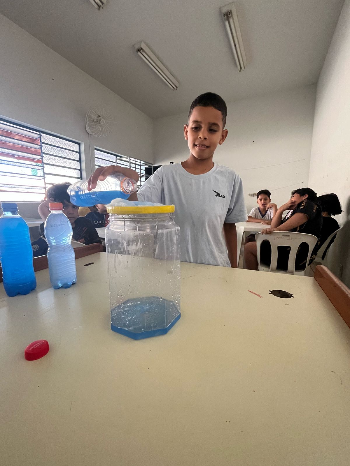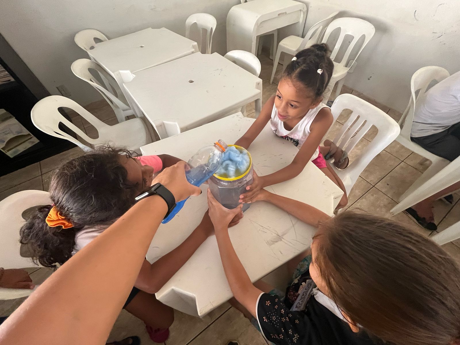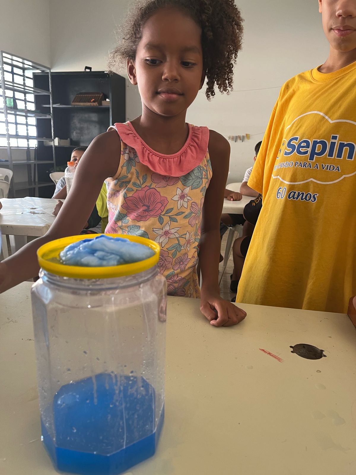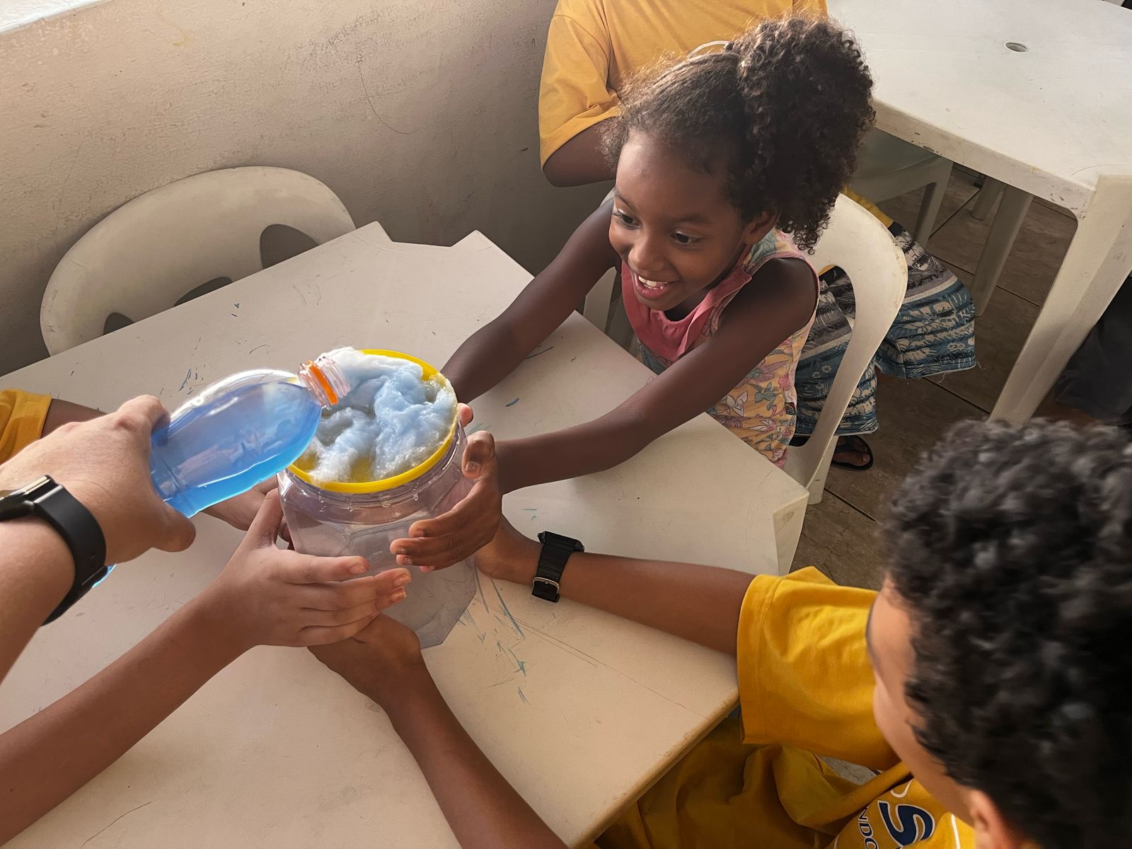 As crianças aprenderam sobre a importância da preservação da água de forma criativa e divertida. Produziram cartazes com mensagens de conscientização e participaram de uma experiência prática que mostrou, na prática, como a água é essencial para a vida.