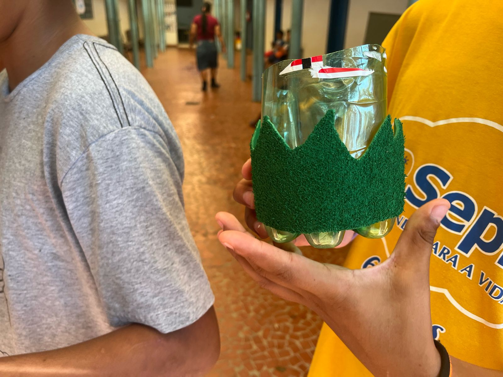 As crianças participaram de uma atividade especial de arte e cuidado com a natureza. Cada uma decorou seu vasinho feito com garrafa pet reciclada e plantou mudas de alface, unindo criatividade, sustentabilidade e bem-estar.
