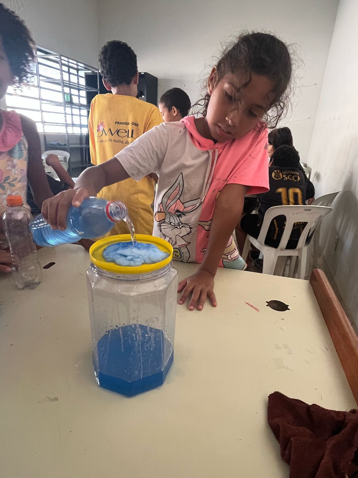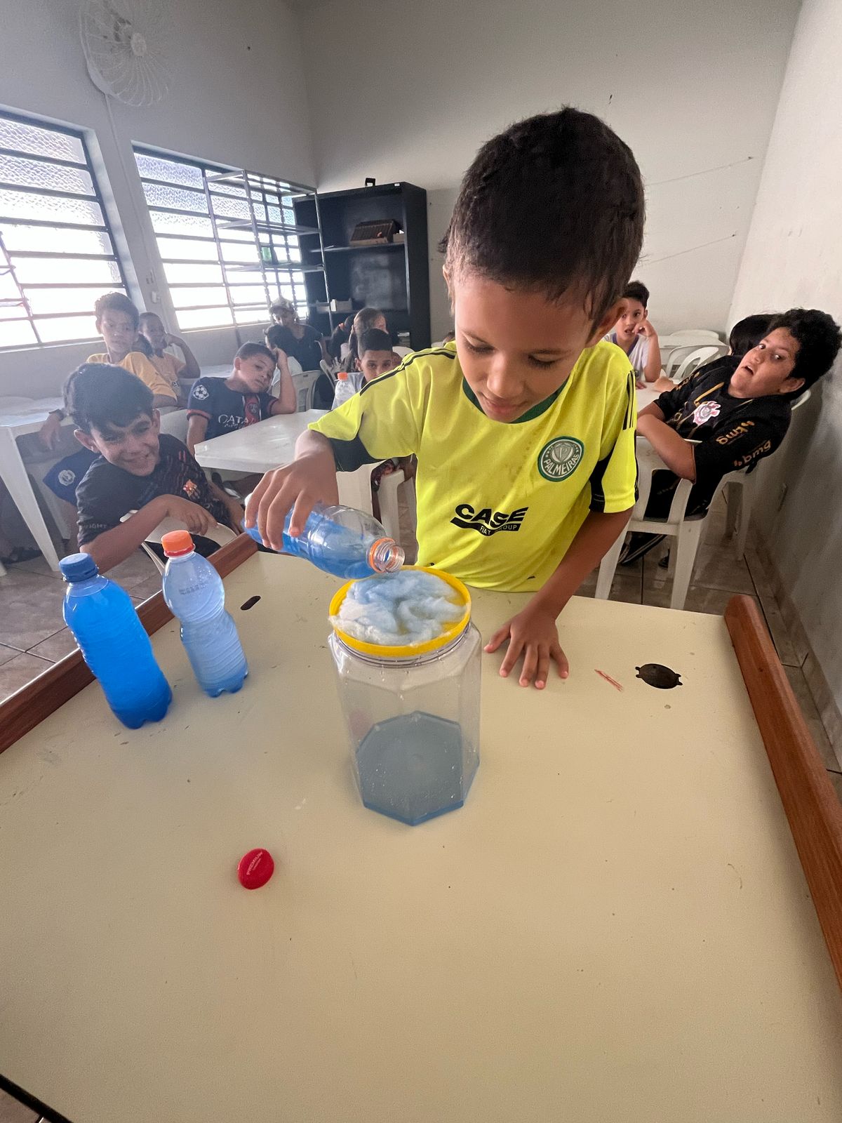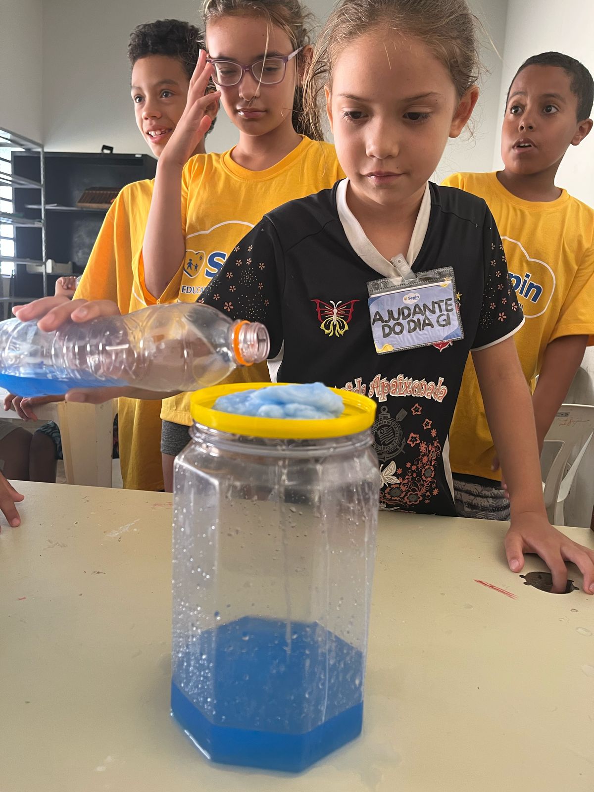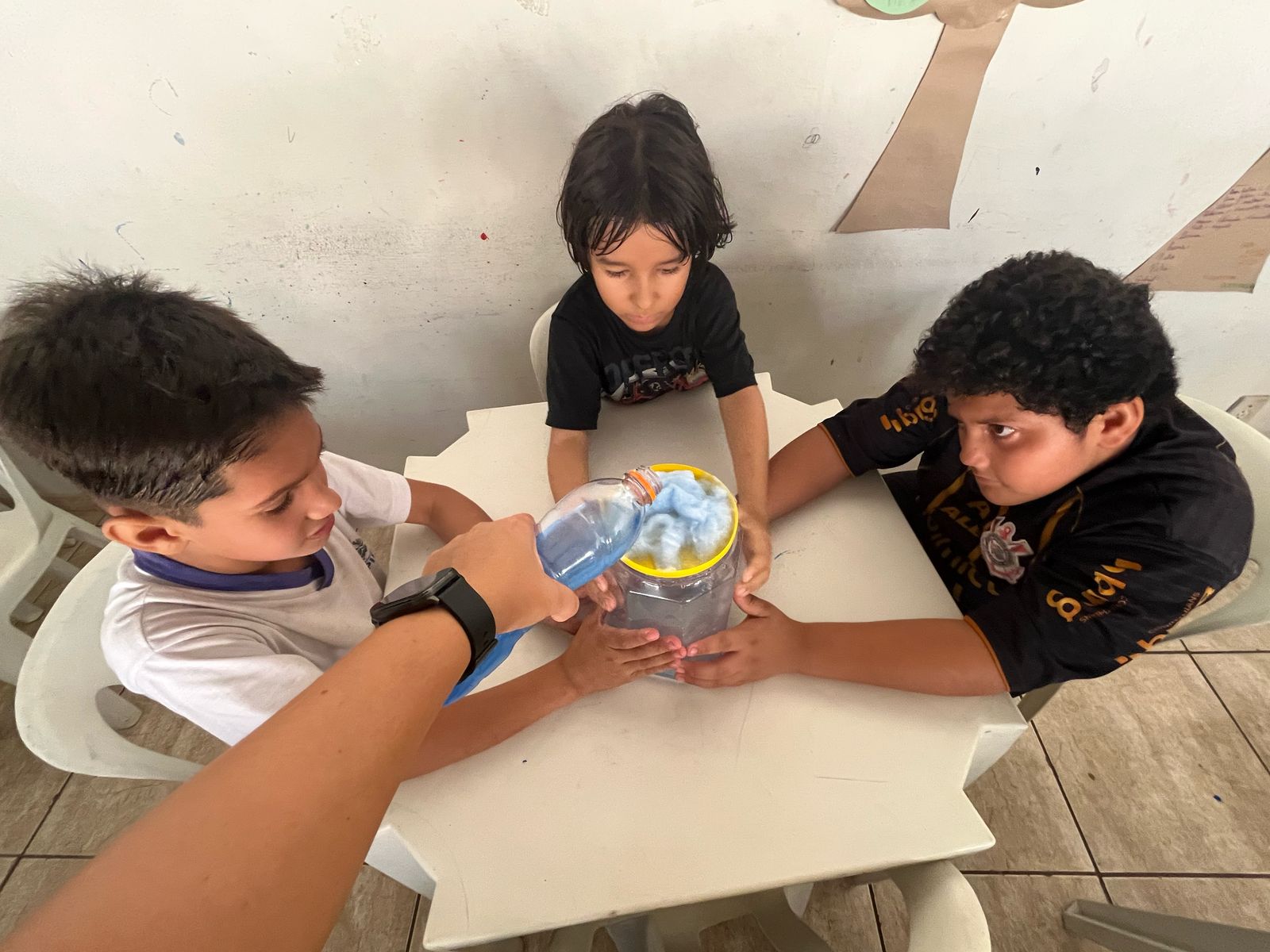 As crianças aprenderam sobre a importância da preservação da água de forma criativa e divertida. Produziram cartazes com mensagens de conscientização e participaram de uma experiência prática que mostrou, na prática, como a água é essencial para a vida.