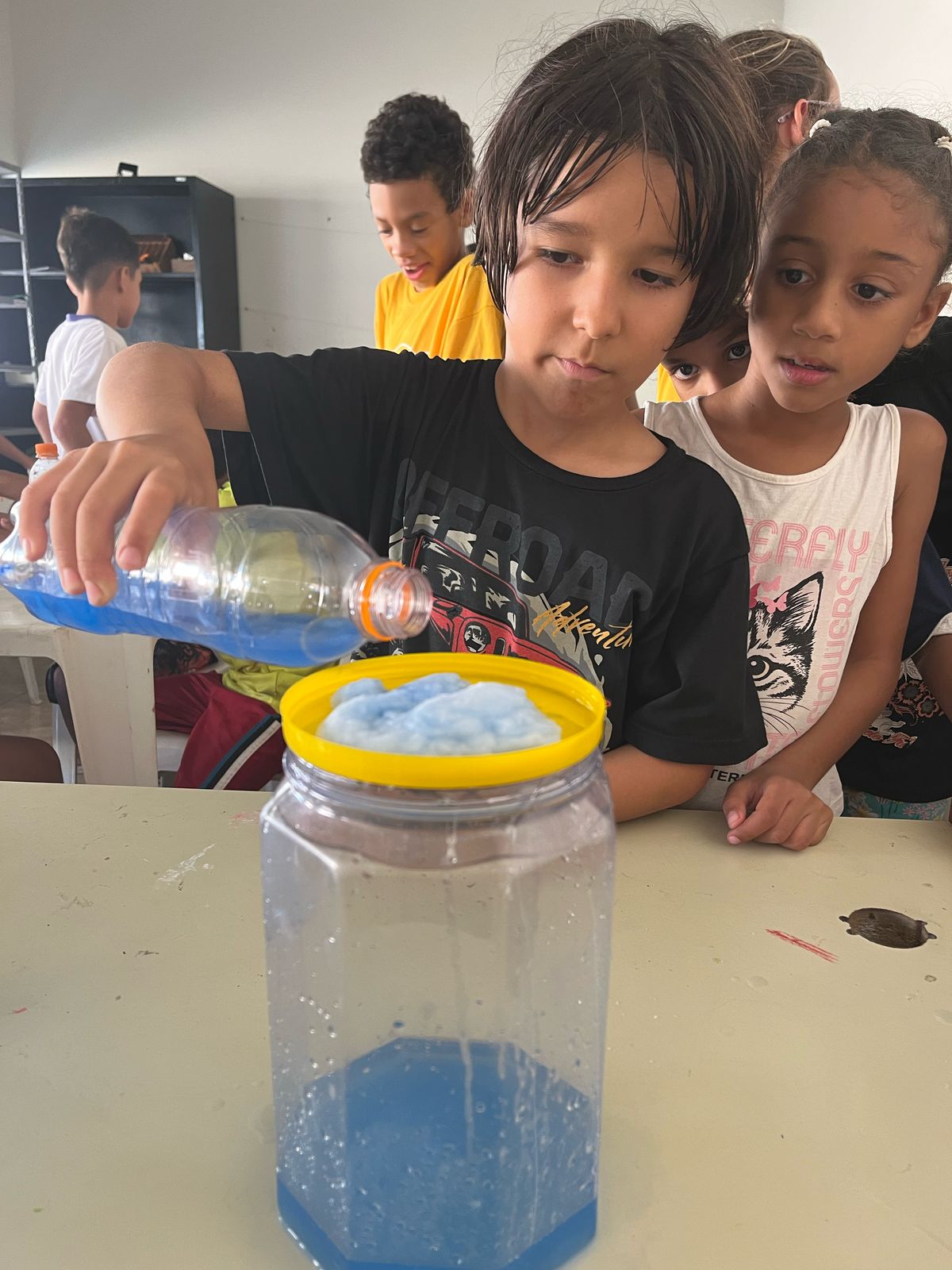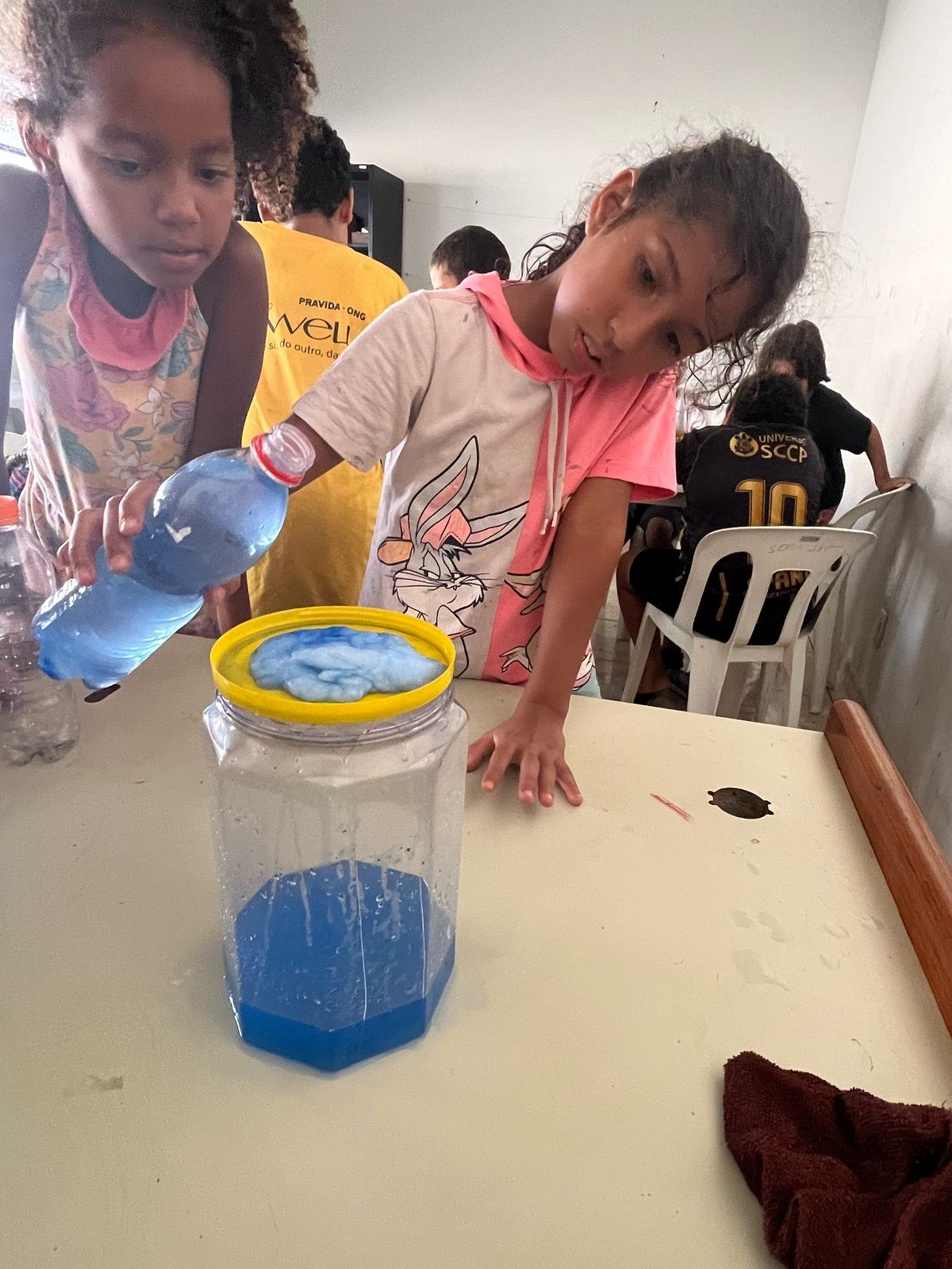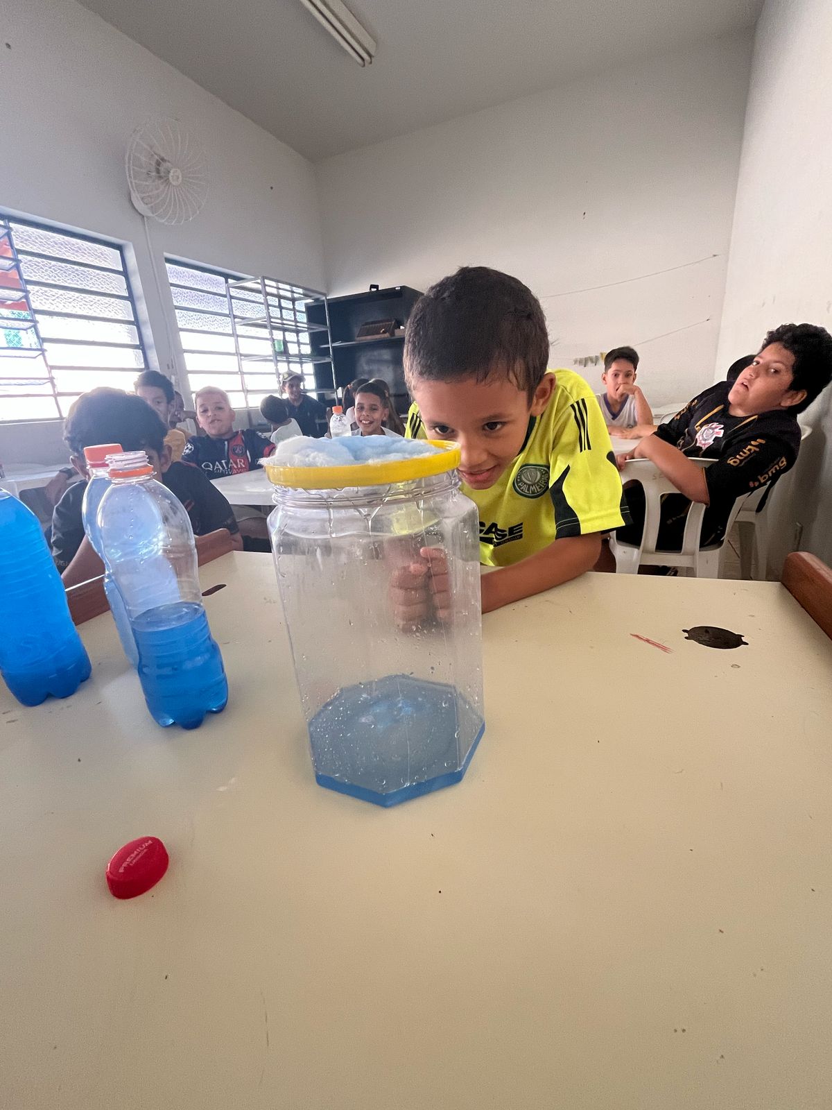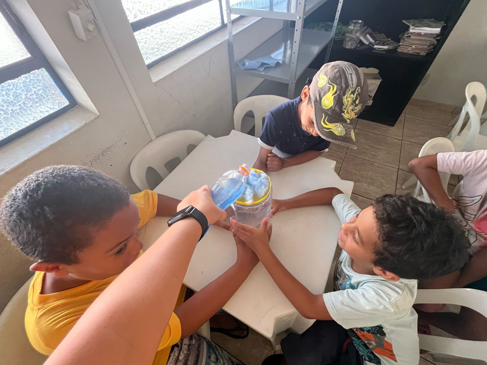 As crianças aprenderam sobre a importância da preservação da água de forma criativa e divertida. Produziram cartazes com mensagens de conscientização e participaram de uma experiência prática que mostrou, na prática, como a água é essencial para a vida.